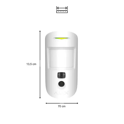 Vnitřní bezdrátový detektor pohybu, PIR+CAM, PET imunita, dosah 12 metrů, fotografie na vyžádání, nadčasový design.