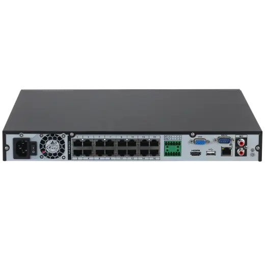 IP záznamové zařízení s možností připojení až 16 kamer do rozlišení 12 Mpx a maximální rychlostí datového toku 160 Mbps. Mezi další funkce patří snadný přístup z více aplikací, IVS, počítání osob, heatmap, možnost uložení dat na 2 HDD SATA o celkové kapacitě až 20 TB (neobsahuje HDD), 1x přední USB 2.0, 1x zadní USB 2.0. Rozšířená podpora chytrých AI analýz a filtru umělé inteligence možná pouze, pokud je na straně připojené kamery.